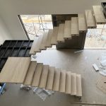 Stiamo parlando di volumi e pesi notevoli: da assemblare interamente sul posto, ossia direttamente nella villa. Abbiamo realizzato pertanto una impalcatura che consentisse di sollevare la struttura della scala senza correre il rischio di graffi e/o ammaccature onde garantire un risultato finale privo di vizi e difetti.