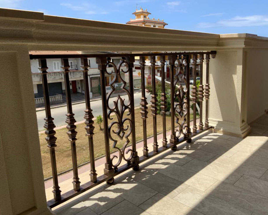 Il ferro battuto, in particolare, spesso scelto per la realizzazione di balconi e ringhiere, è un esempio di come la lavorazione del materiale consenta di ottenere forme decorative, che aggiungono valore estetico all’edificio.