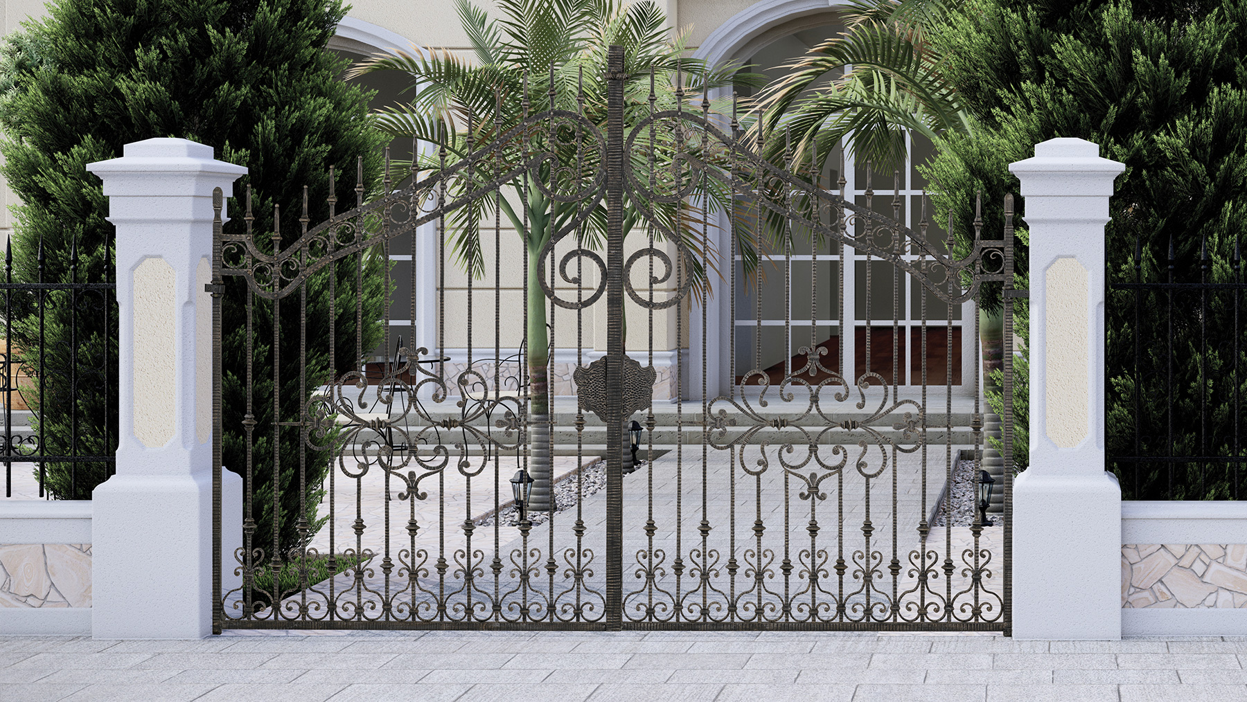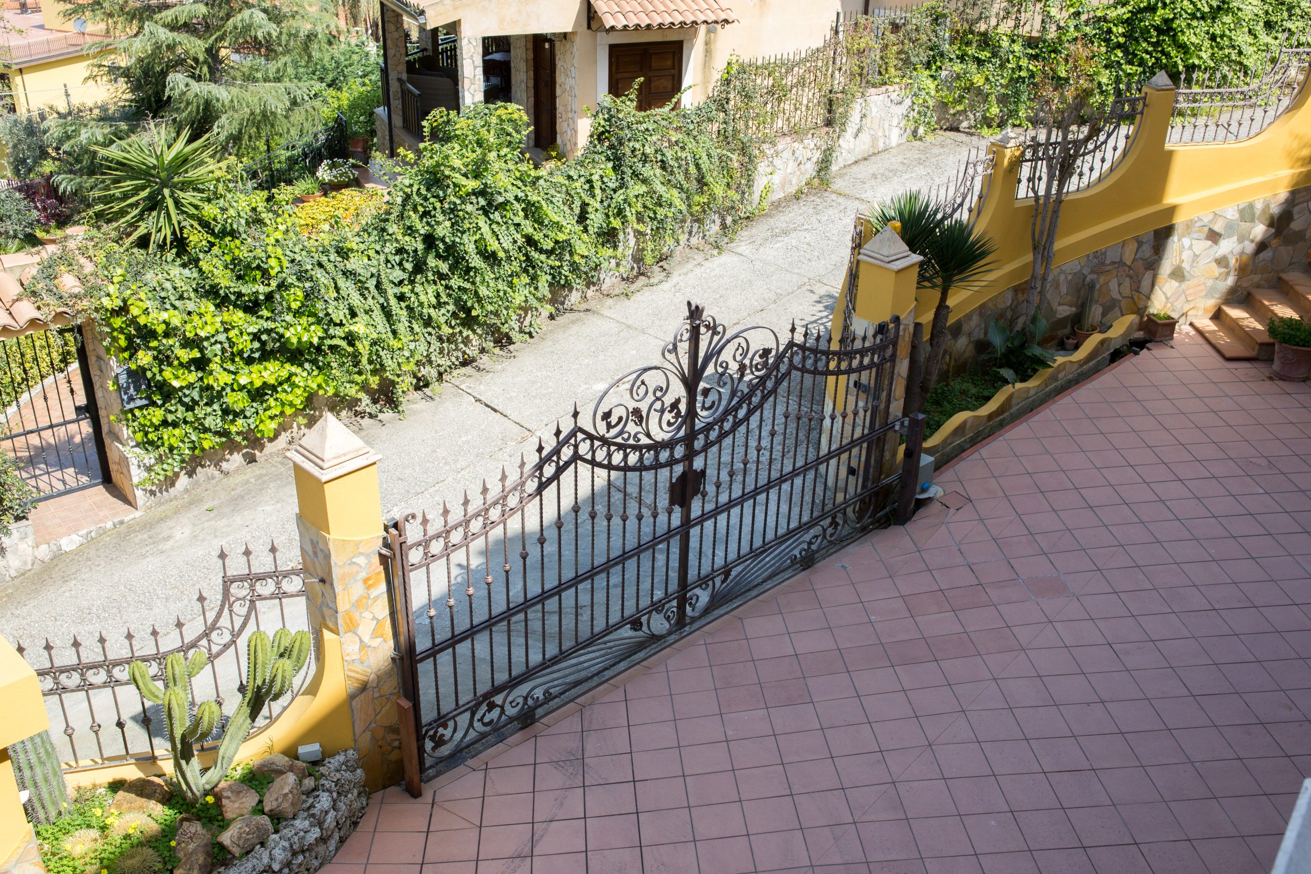 Inoltre, se l’ingresso è particolarmente visibile o elegante, puoi abbinare il cancello in ferro battuto con altre strutture esterne, come una veranda o una pergola in ferro battuto, per un’armonia stilistica.