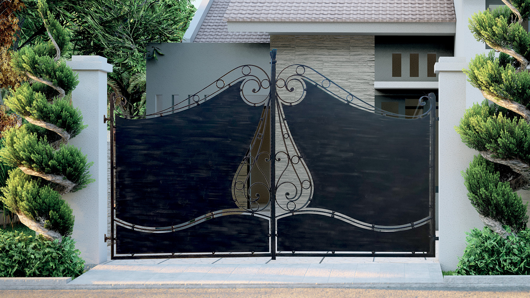 Cancello in ferro battuto in stile contemporaneo