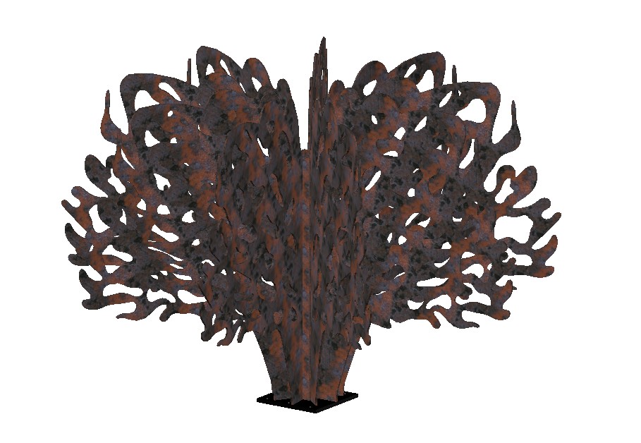 - 9 lastre in acciaio corten da 8 mm di spessore, tagliate a laser secondo il disegno progettuale, che formano la chioma;